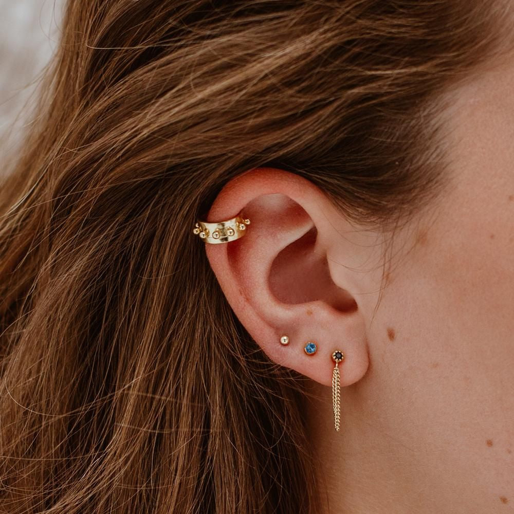 Kleine huggies oorbellen met amazoniet steentjes - goud