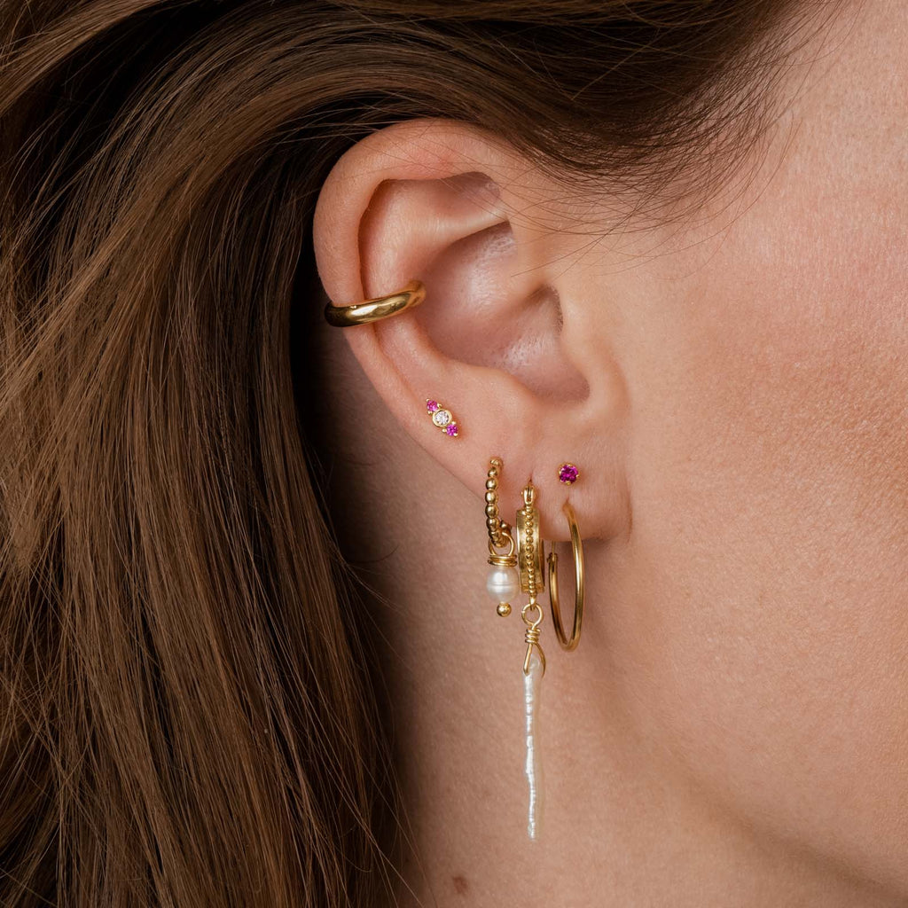 Oorsteker bindi met zirkonia steentjes in de kleur ruby & rhodolite.