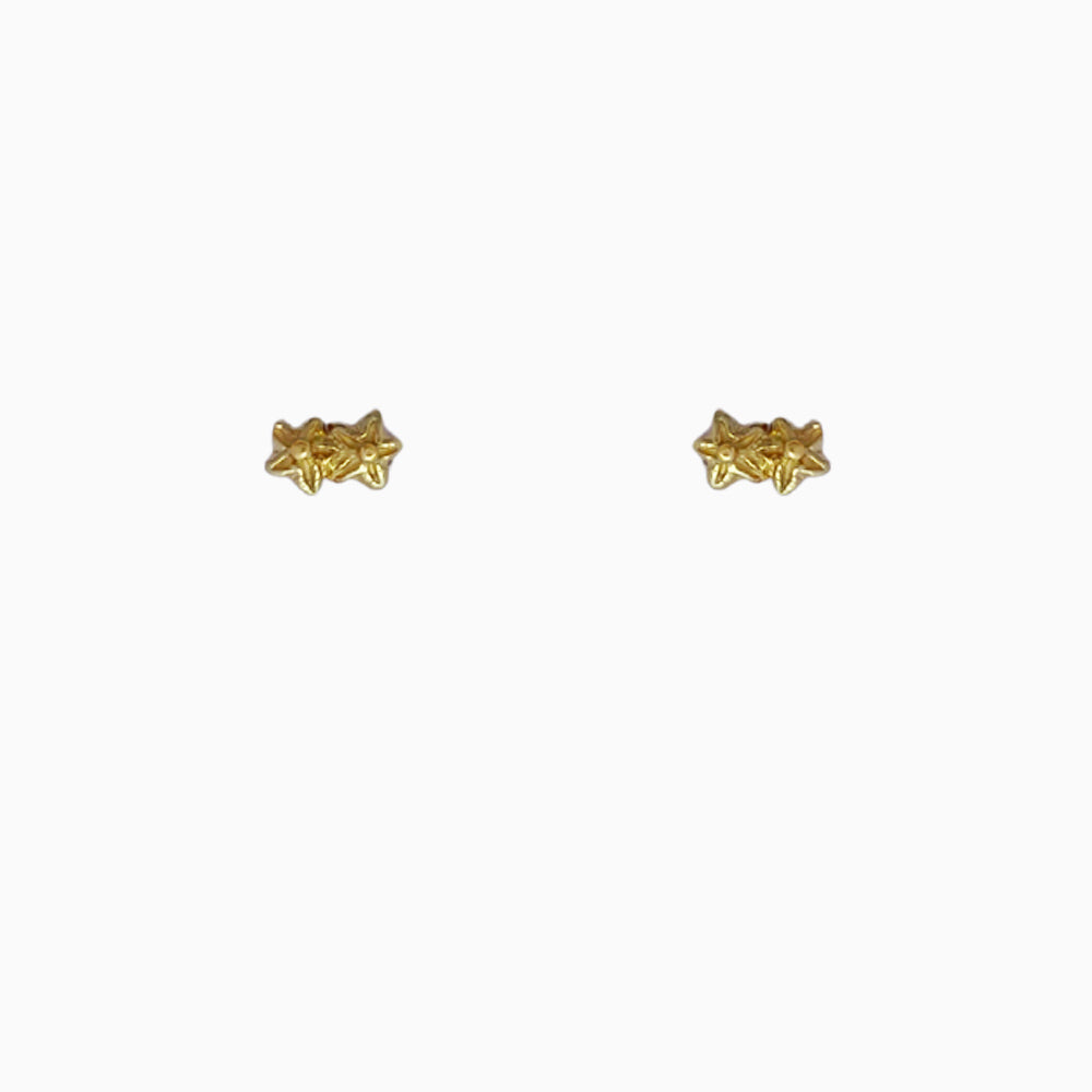 Oorknopje met twee kleine bloemen - goud