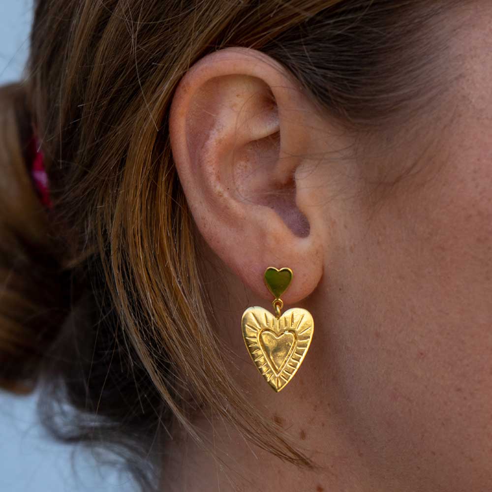 Chunky statement studs met dubbele hartjes