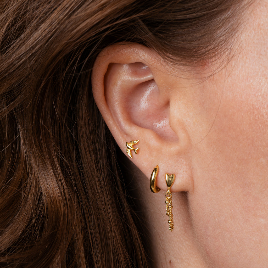 Kleine zwaluw studjes. Gemaakt van 14k gold plated over 925 zilver.
